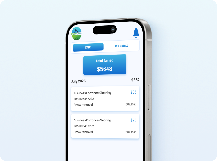 • On-demand snow shovelling with flexible pricing based on your property size and current weather conditions.